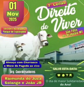 Prepara o coração e a agenda, porque o Parque de Exposição José Carlos Christichini em São Félix do Araguaia, será palco de uma grande programação voltada para a solidariedade da população. Neste sábado, dia 01 de novembro acontece no local o 7º Leilão Direito de Viver em prol do Hospital de Amor de Barretos.